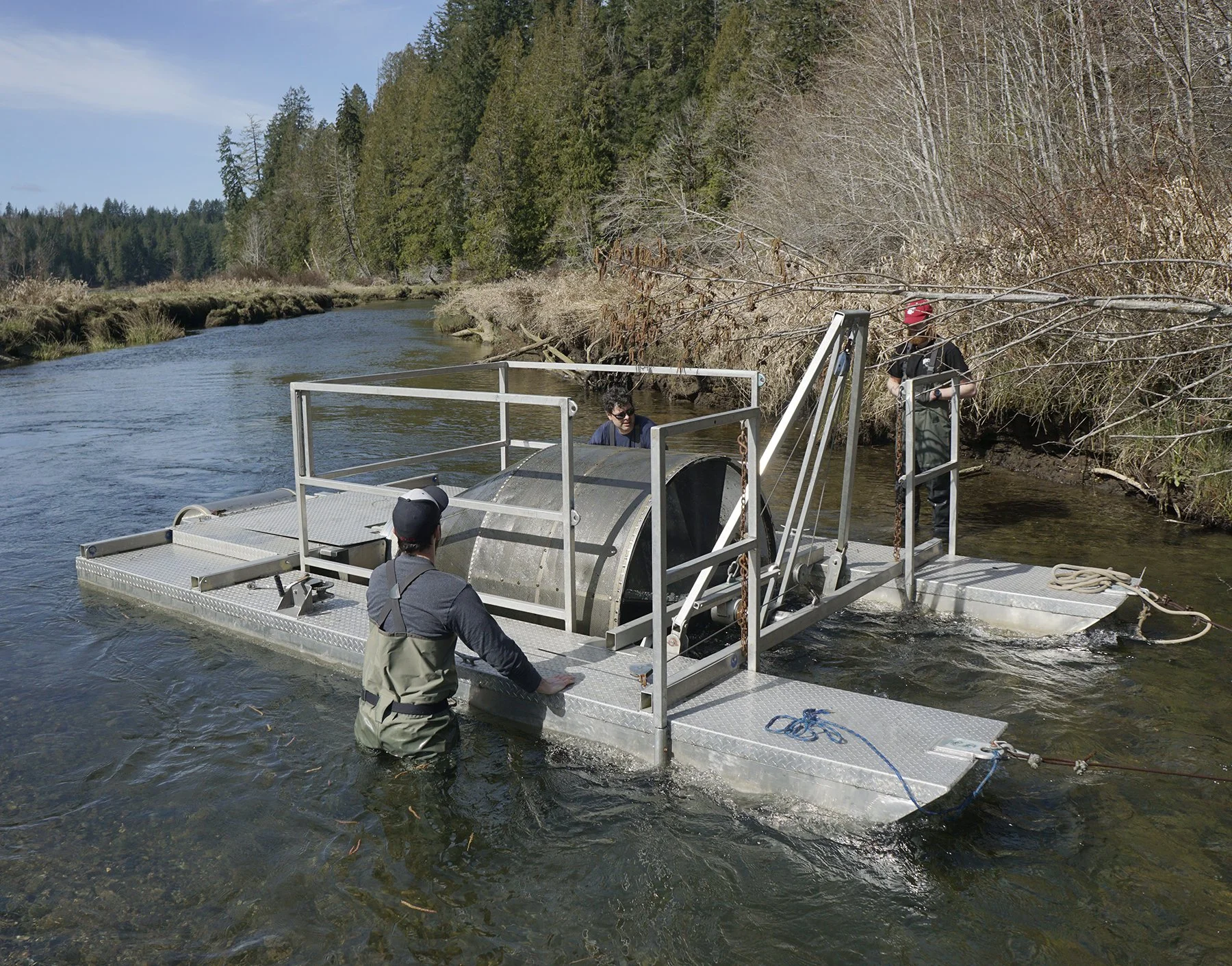 The team successfully operated three juvenile rotary screw-trap monitoring stations on the Tahuya, Dewatto, and Little Quilcene Rivers throughout each spring season. This isn't easy work. It means overcoming challenges such as debris, high flows, scheduling fluctuations, and ongoing equipment maintenance to ensure daily trap operations for nearly 10 weeks each year.